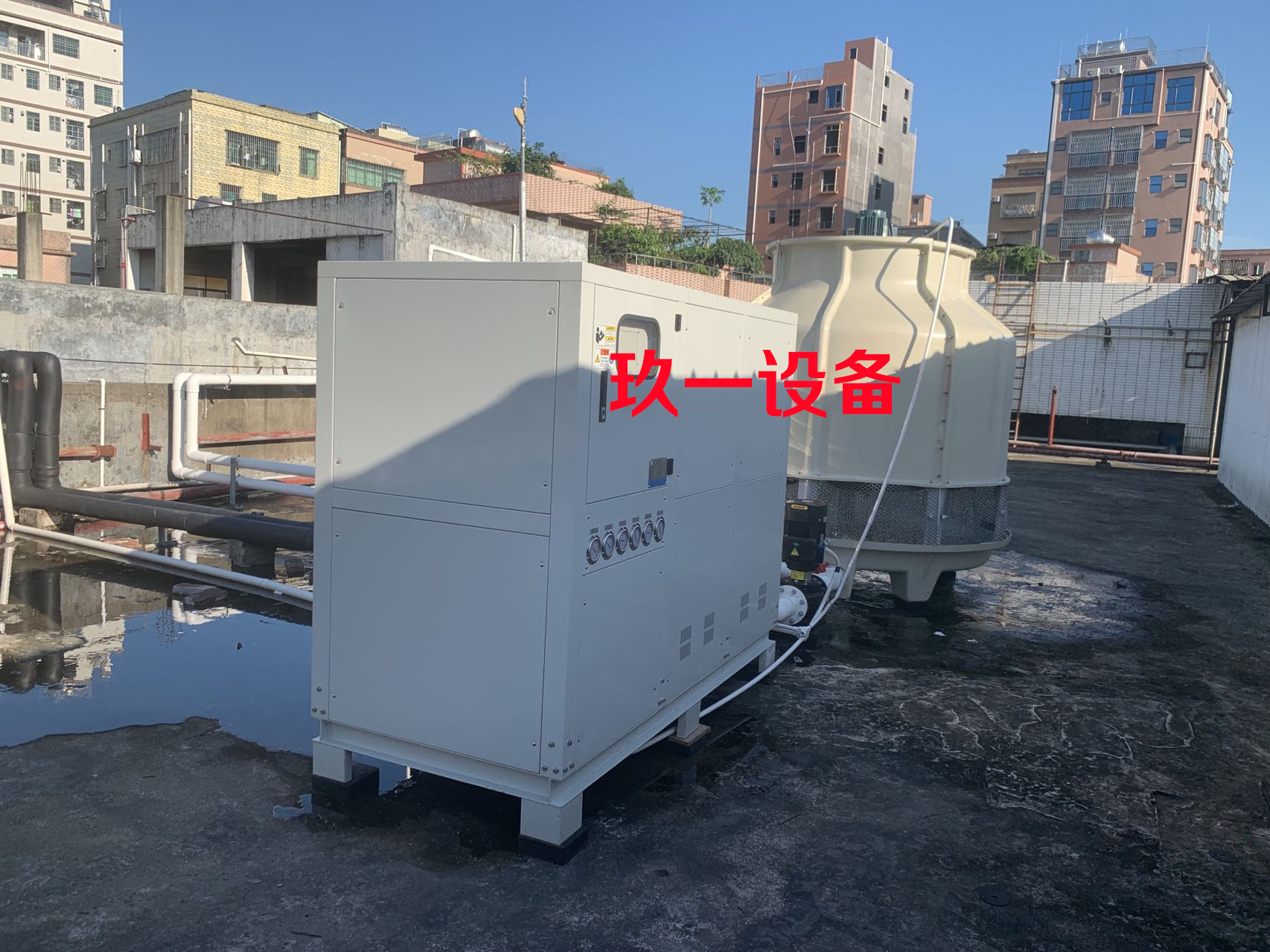 近期剛好為某公司做了一套車間降溫用水冷式冷水機(jī)組,選用的是30P水冷冷水機(jī)。