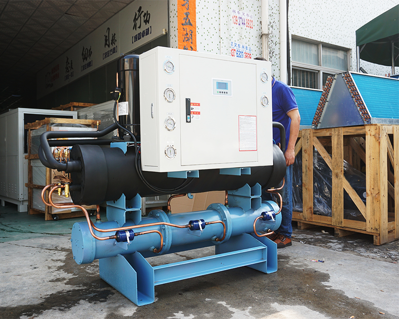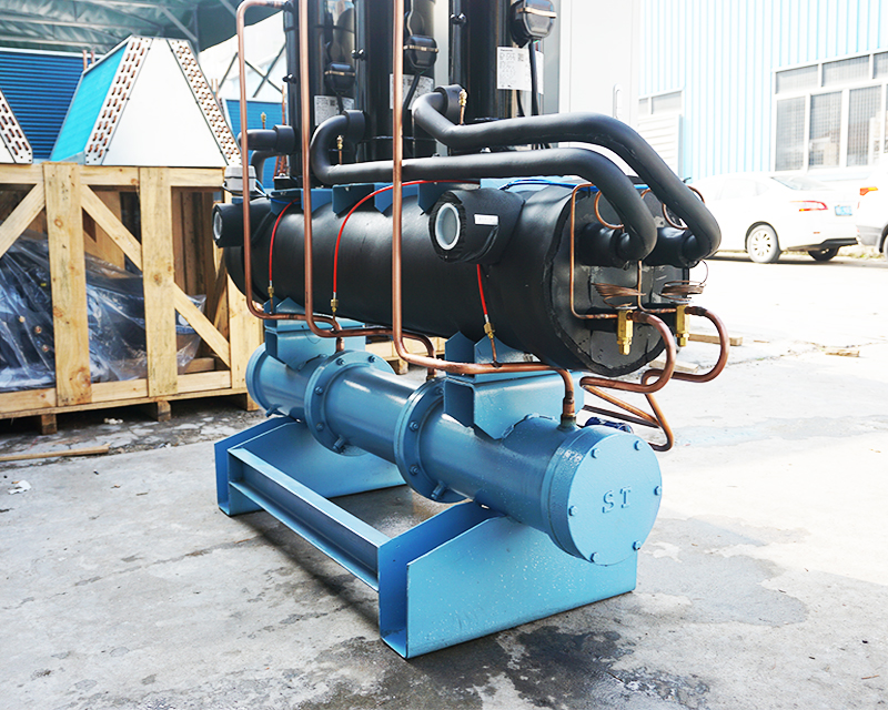 開放式冷水機主要由壓縮機、蒸發(fā)器、冷凝器、電控系統(tǒng)、冷凍配件組件組成,開放式冷水機組內(nèi)部只有完善的制冷和控制系統(tǒng),其水路系統(tǒng)并不完善 。因為其機組不帶水箱水泵,需要客戶根據(jù)自己的實際情況來進行匹配。
